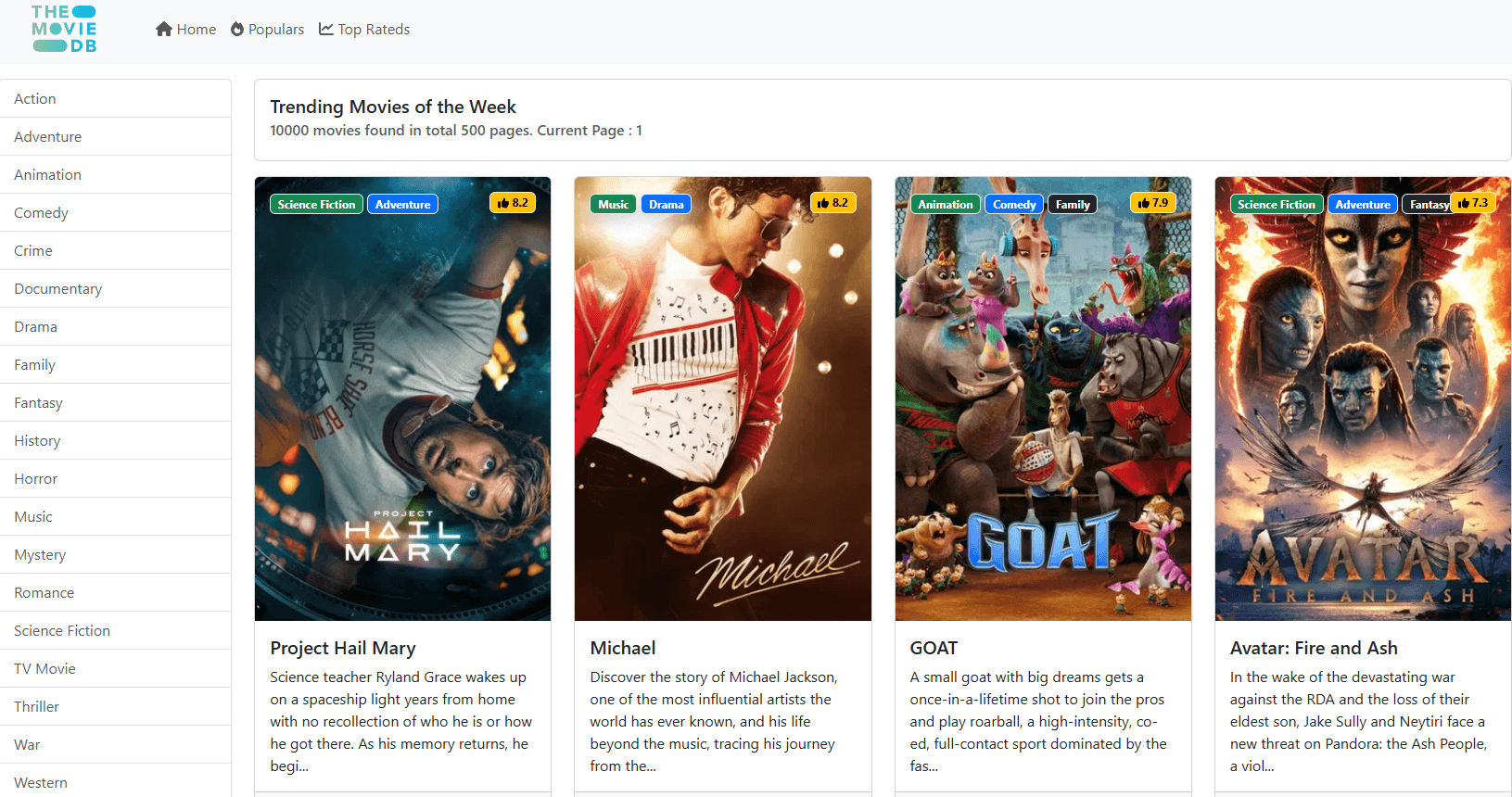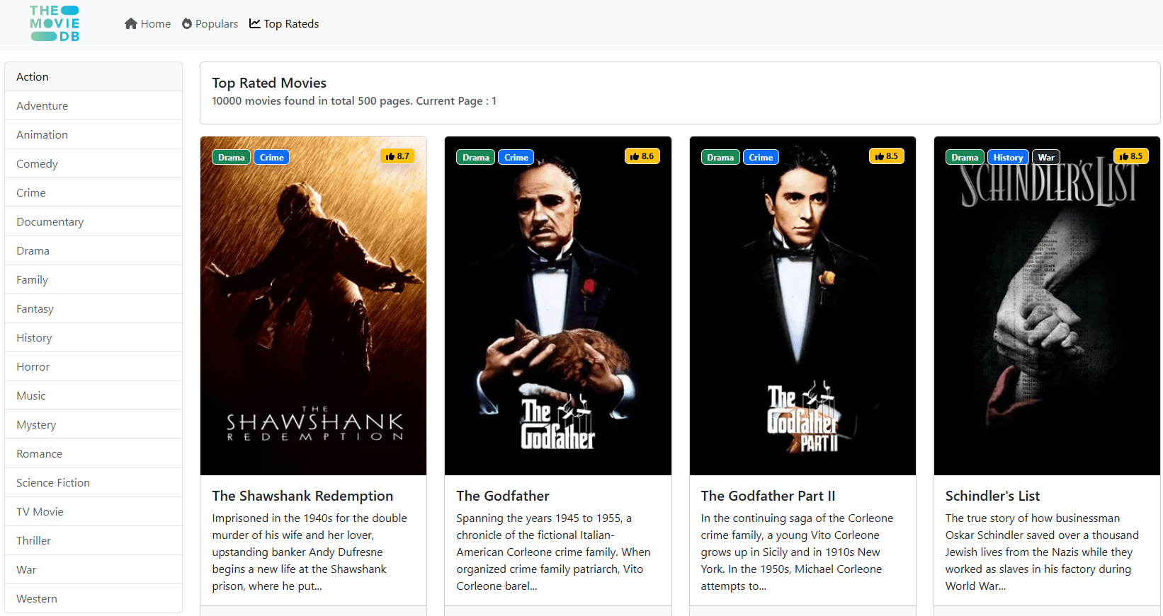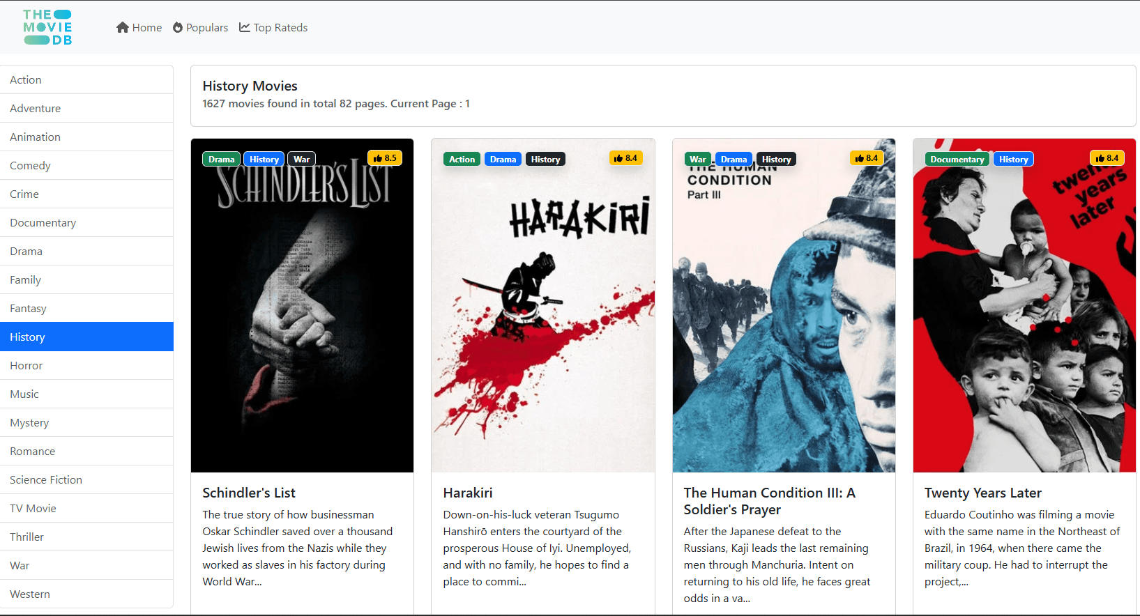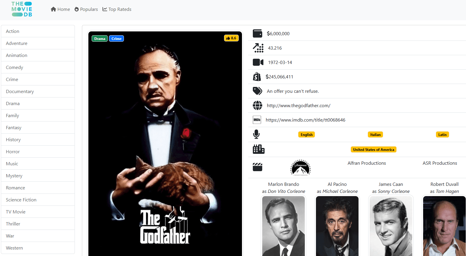 RESTful API kullanım örneği olarak The Movie Database (TMDB) API kullanılarak hazırlanmış bir Single Page Application(SPA) proje örneği.